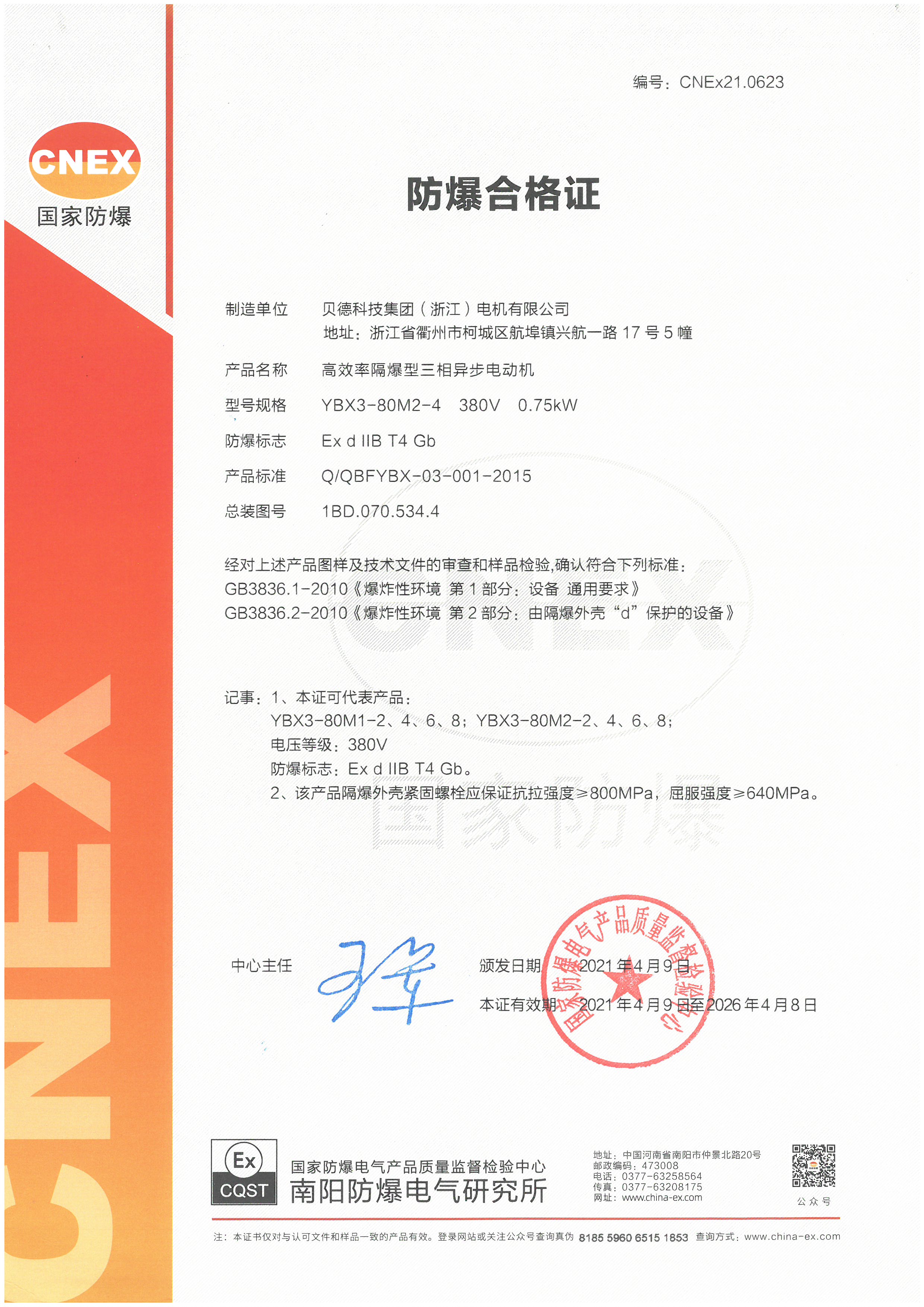 公司率先在行業(yè)內(nèi)取得防爆電氣設(shè)備防爆合格證、產(chǎn)品認(rèn)證證書(shū)、中國(guó)節(jié)能產(chǎn)品認(rèn)證證書(shū)、中國(guó)國(guó)家強(qiáng)制性產(chǎn)品認(rèn)證證書(shū)以及ISO9001質(zhì)量管理體系認(rèn)證證書(shū)等。