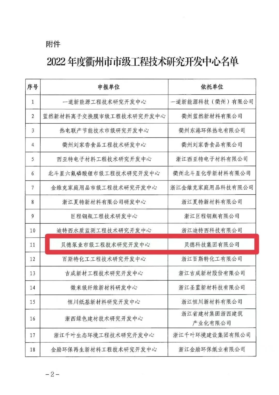 此次獲批市級(jí)工程技術(shù)研發(fā)開發(fā)中心,為貝德科技集團(tuán)進(jìn)一步科技創(chuàng)新、高質(zhì)量發(fā)展蓄勢(shì)注能,也為貝德泵業(yè)工程技術(shù)研發(fā)中心申請(qǐng)浙江省研發(fā)中心打下基石。