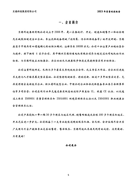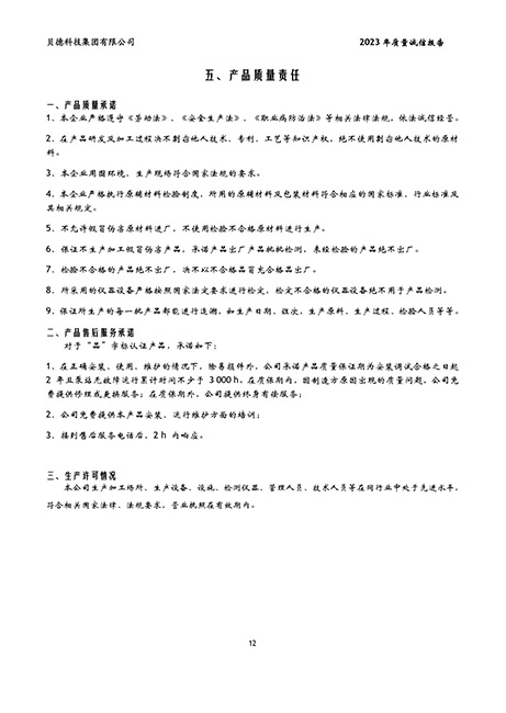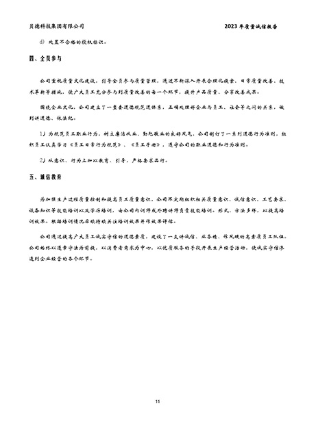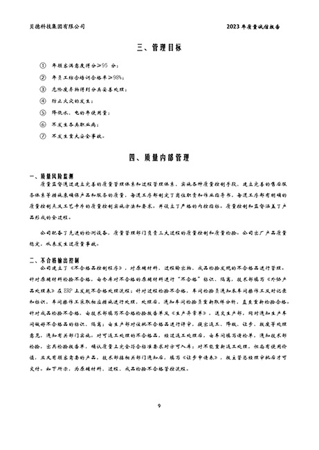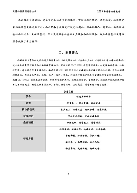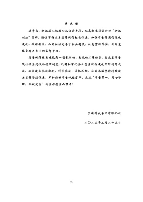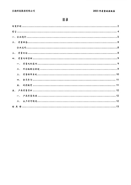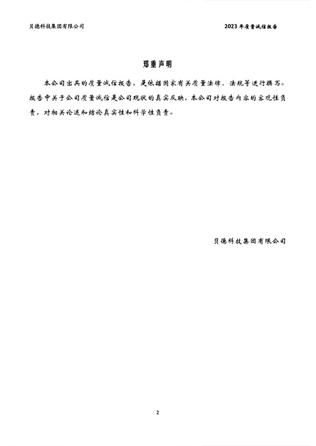 貝德科技集團2023質(zhì)量誠信報告