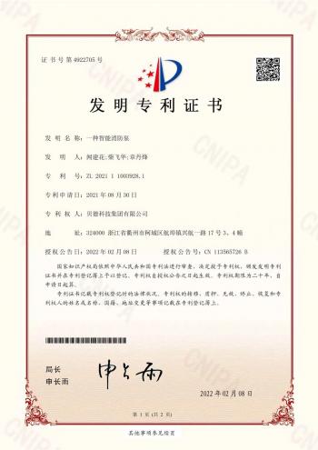 農(nóng)歷虎年春節(jié)剛過,就連連傳來喜訊,公司去年6月9日和8月30日申報(bào)的兩項(xiàng)發(fā)明專利,歷時(shí)半年多,經(jīng)過材料審查和審查員授權(quán),智能消防泵于2022年2月8日被授予了發(fā)明專利證書,專利號為:ZL 2021 1 1003928.1;節(jié)能型變?nèi)荼糜?022年2月11日被授予了發(fā)明專利證書,專利號為:ZL 2021 1 0641247.1